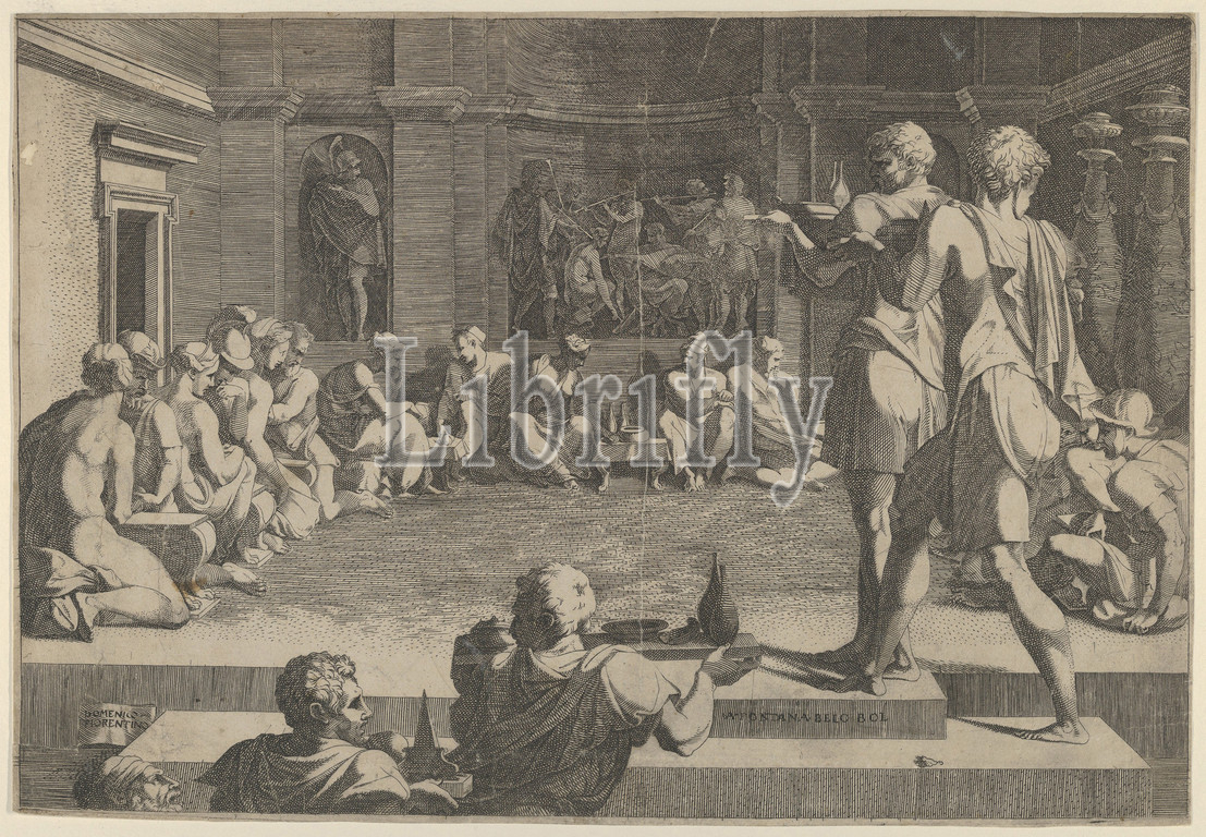 Banquet, Alexander, 1540–50, Engraving, Sheet, 9 3/4 x 14 7/16, 24.7 36.6 cm, Prints, Domenico del Barbiere, Italian, Florence, 1506–1565, Paris, After Francesco Primaticcio, Bologna, 1504/5–1570
