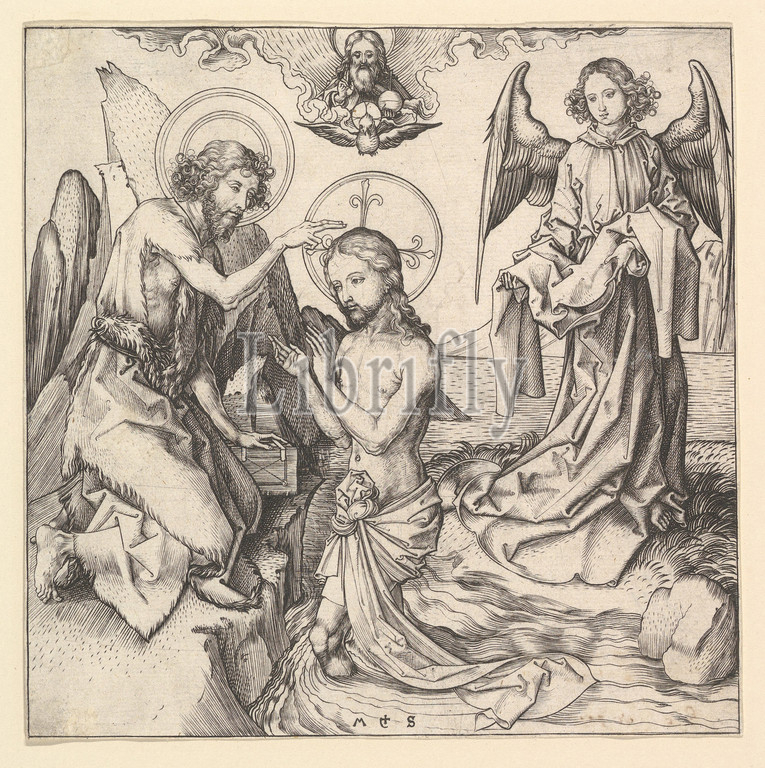 Baptism of Christ, 15th century, engraving, sheet: 6 1/4 x 6 1/4 in. (15.9 x 15.9 cm), Prints, Martin Schongauer (German, Colmar ca. 1435/50–1491 Breisach)