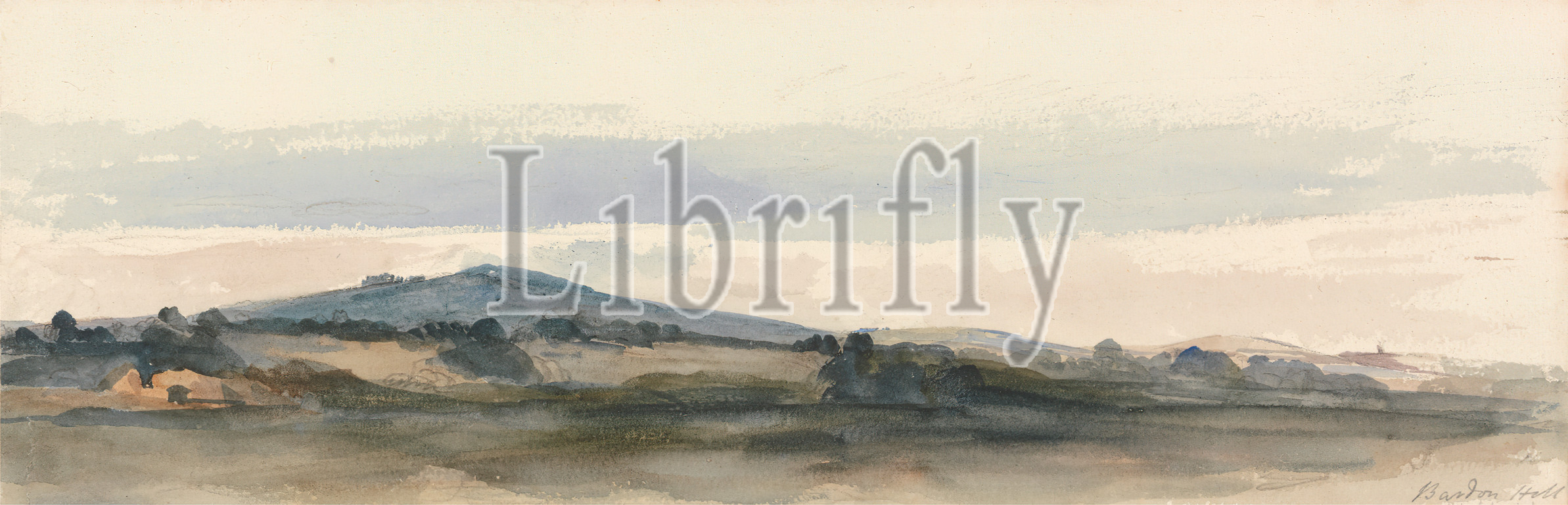 Bardon Hill, Charnwood Forest, Leicestershire, attributed to Peter DeWint, 1784–1849, British, undated, Watercolor and graphite on medium, slightly textured, cream wove paper, Sheet: 3 3/8 x 10 1/4 inches (8.6 x 26 cm), forest, hills, landscape, mountains, trees, Charnwood Forest, England, Europe, Leicestershire, United Kingdom