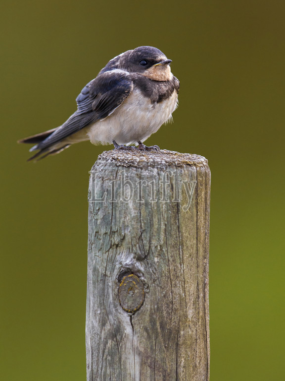Barn Swallow juvenile perched on a pole, Hirundo rustica, Italy