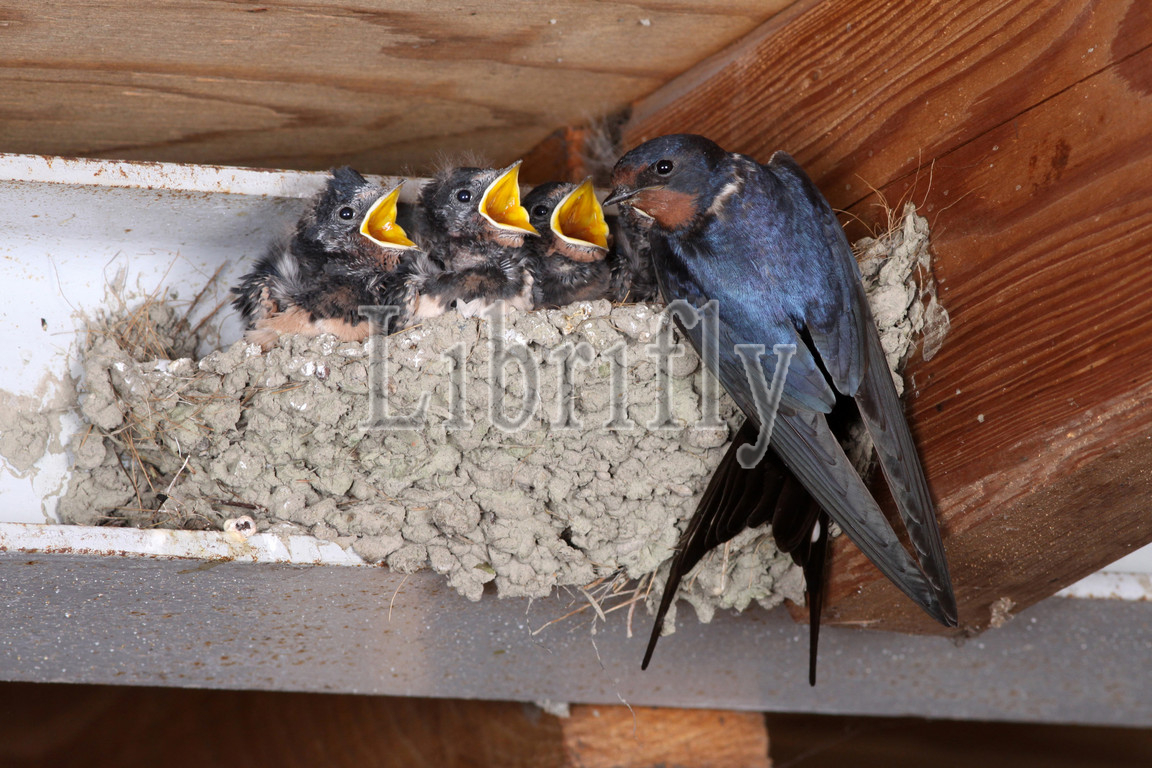 Barn Swallow at the nest, Hirundo rustica