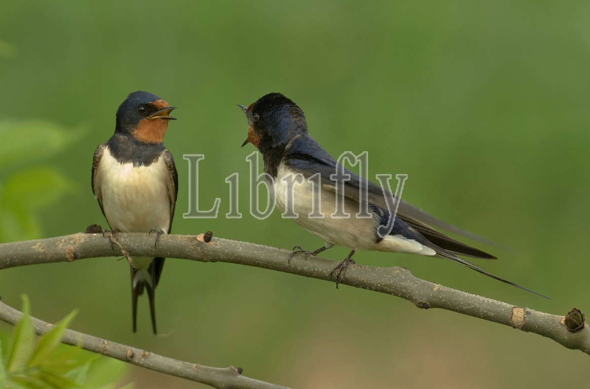 Barn Swallow pair perched, Hirundo rustica, Netherlands