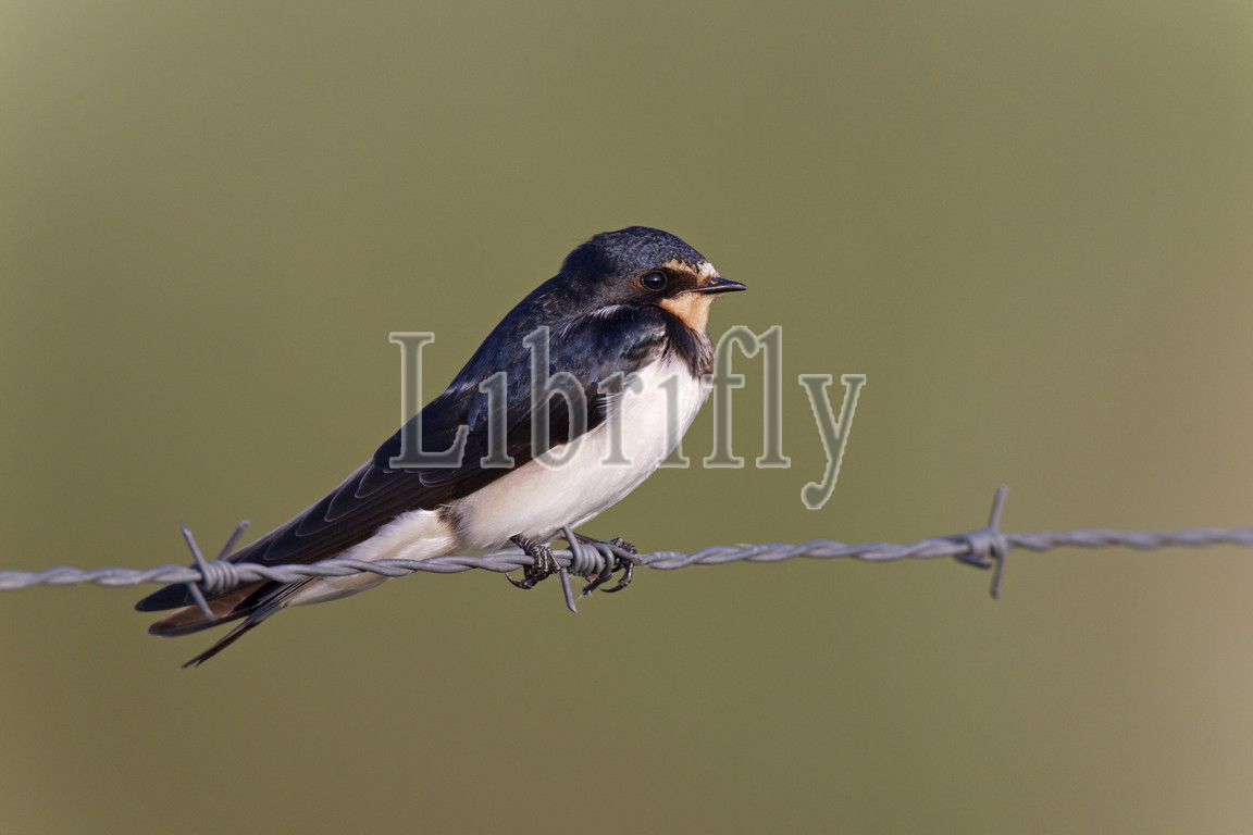 Barn Swallow perched on barbed wire, Hirundo rustica, Netherlands
