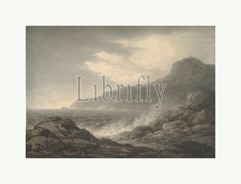 Barren Coast, Slight Storm, 1794, Graphite, brush, black, gray wash, Sheet, 10 x 14, 25.4 35.6 cm, Drawings, John Glover, British, Houghton-on-the-Hill, Leicester, 1767–1849, Launceston, Tasmania, Glover, twenties, working, drawing master, Lichfield, Staffordshire, demonstrates, early skill, Old Watercolour Society, established, moved, London, contributions, group, first exhibition, 1806 prompted, Rudolph, Ackermann, remark, raised, reputation, greatest height
