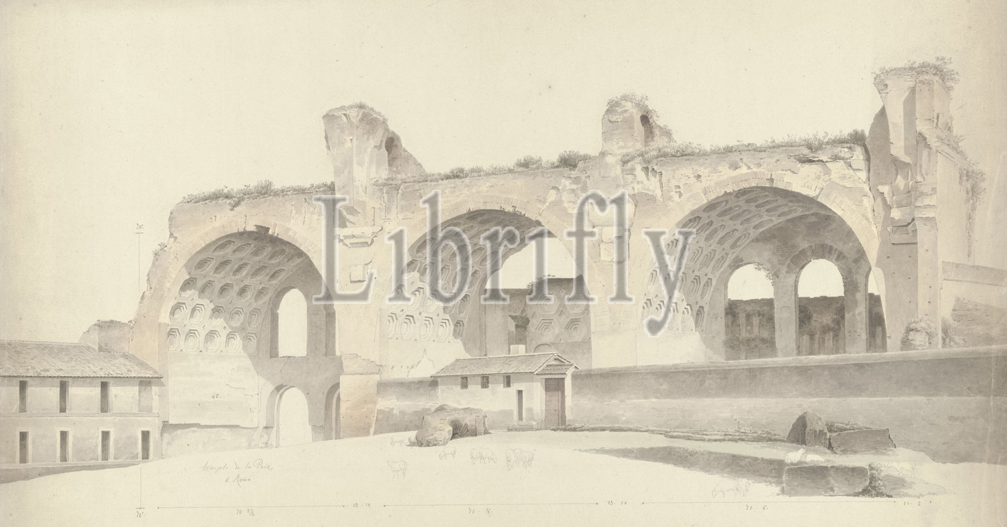 Basilica, Maxentius, Constantine, Rome, Drawing, group, 46 drawings, studies, mainly cityscapes, landscapes, Ruin, building, architecture, Roman Forum, Josephus Augustus Knip, Italy, c, 1809, 1812, paper, graphite, mineral, watercolor, paint, brush