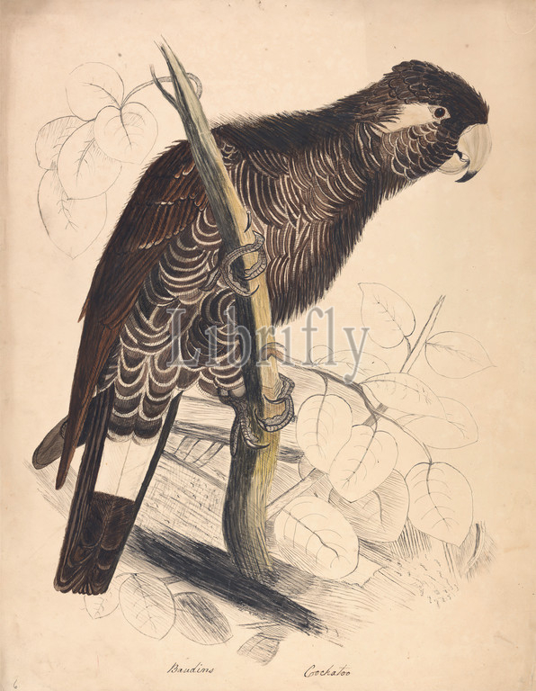 Baudins Cockatoo, nineteenth century, Edward Lear, 1812–1888, British, 1832, Watercolor, pen, black ink, beige board, Sheet, animal art