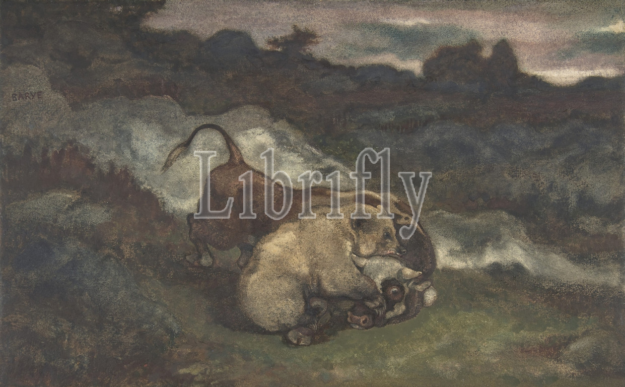 Bear Killing a Bull, 1810–75, Watercolor on wove paper, Sheet: 8 3/8 x 13 3/8 in. (21.3 x 34cm), Drawings, Antoine-Louis Barye (French, Paris 1796–1875 Paris)