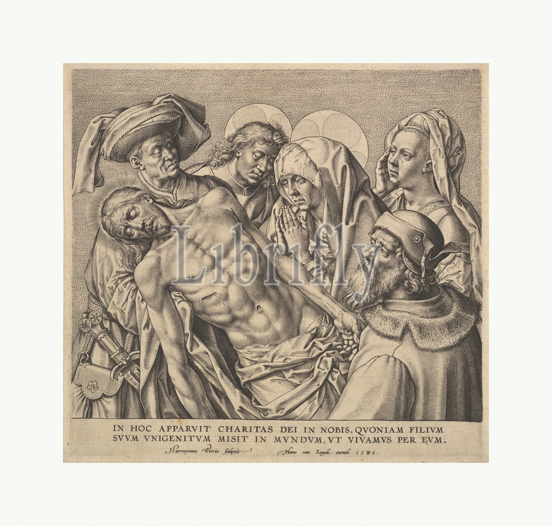Bearing, Body, Christ, 1586, Engraving, first state, two, Plate, 7 3/16, 5/8, 18.3, 19.4 cm, Prints, Hieronymus, Jerome, Wierix, Netherlandish, ca., 1553–1619, Antwerp