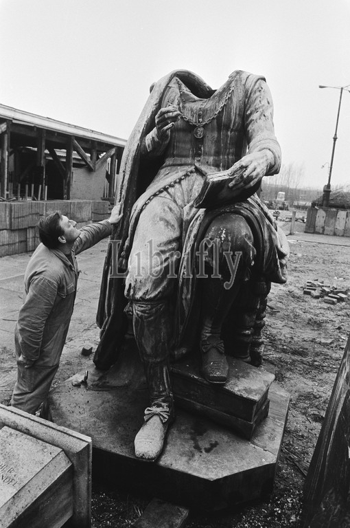 Beheaded statue, Vondel, municipality property, December 24, 1982, statues, vandalism, Netherlands, 20th century, press agency photo, news to remember, documentary, historic photography, 1945-1990, visual stories, human history, Twentieth Century, moments in time