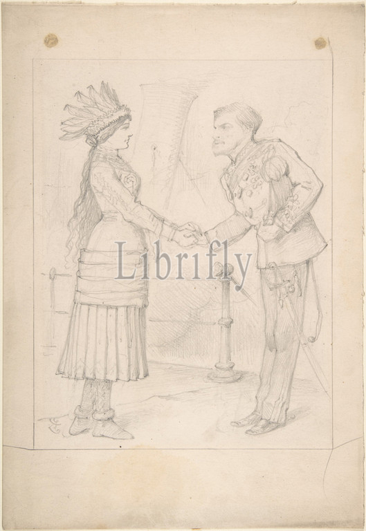 Best, Friends Must Part, ca, 1878, Graphite, Sheet, 10 7/8 x 7 1/2, 27.6 19.1 cm, Drawings, Sir John Tenniel, British, London, 1820–1914, Tenniel, design, wood engraving published, London periodical, Punch, September 8, 1828, represents Canada, third Governor, General, 1st Earl, Dufferin, biding farewell, woman, symbolizes, nation