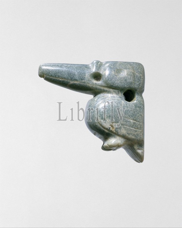 Bird Pendant, 1st century B.C.–.D, century, Costa Rica, Guanacaste-Nicoya, Jade, jadeite, H, 1 5/8, x W, 7/8, x, D, 4.1 x 2.2 4.2 cm, Stone-Ornaments, jade, pendants, ornaments, Central American, region, now, country, area, individual art, forms, Archaeological evidence, jade bird-form, treasured, early, 500 B