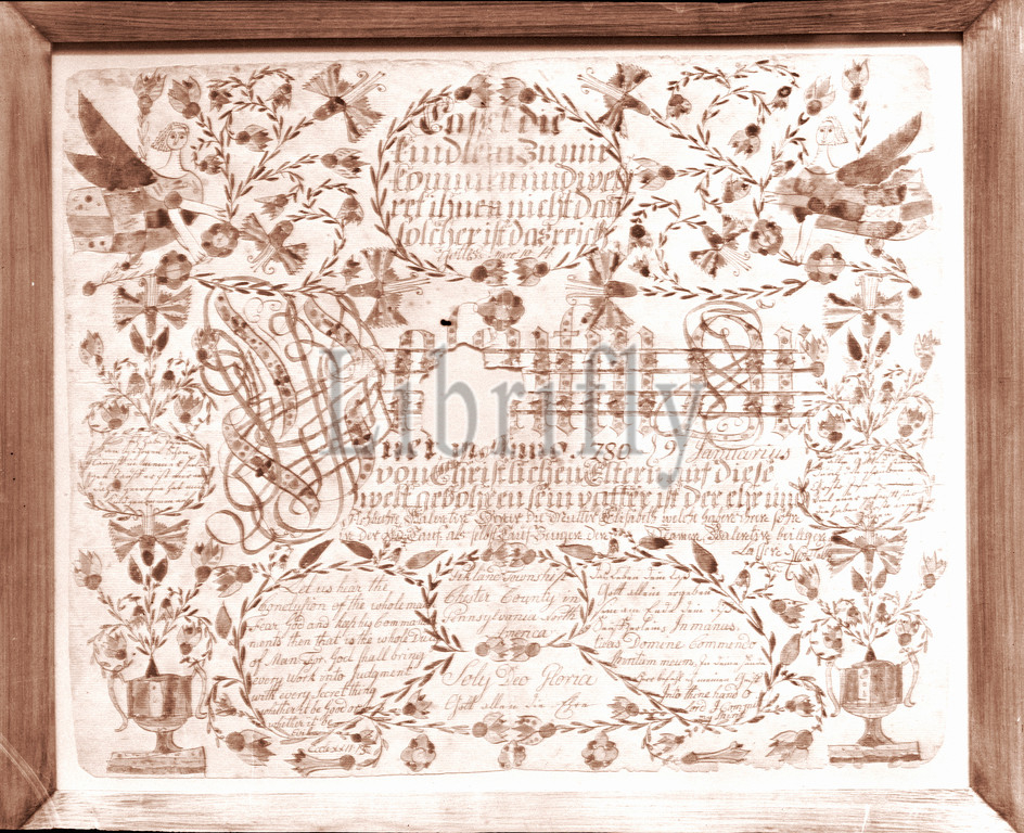 Birth, Baptismal Certificate, 1780, Chester County, Pennsylvania, United States, American, Ink, watercolor, paper, 13 7/8 x 16 7/8, 35.2 42.9 cm, Drawings