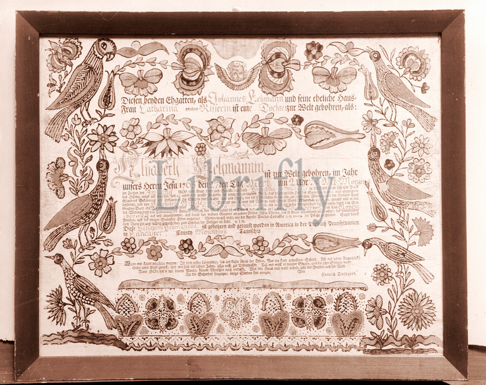 Birth, Baptismal Certificate, 1784, Lancaster County, Pennsylvania, United States, American, Ink, watercolor, paper, 13 1/2 x 17, 34.3 43.2 cm, Drawings, Attributed to Henrich Dulhauer, possibly, Johann Heinrich Otto, ca., 1733–ca., 1800