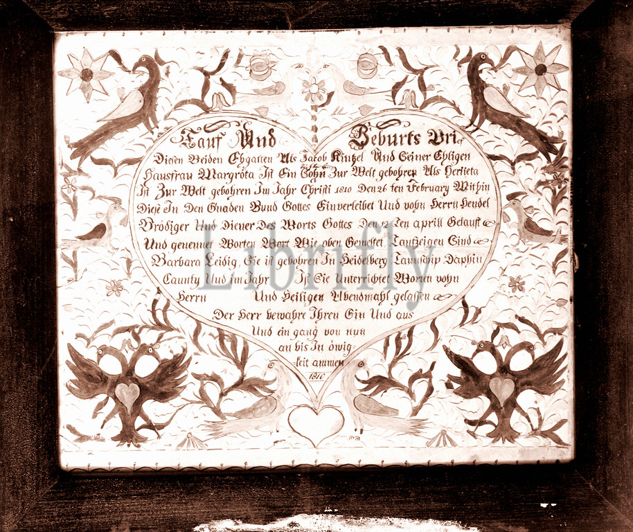Birth, Baptismal Certificate, 1810, Dauphin County, Pennsylvania, United States, American, Ink, watercolor, paper, 12 1/2 x 14 1/2, 31.8 36.8 cm, Drawings