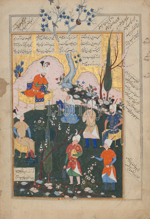 Birth, Zal, Folio, Shahnama, Book, Kings, 1576–77, Attributed, Iran, Qazvin, Ink, opaque watercolor, gold, paper, H, 17 3/4, 45.1 cm, Codices, Attributed to Siyavush, ca., 1536–1610, page, comes, manuscript, Persian epic, produced, Shah Isma'il, II, r, depicts, scene, story, great warrior, heroes, epic