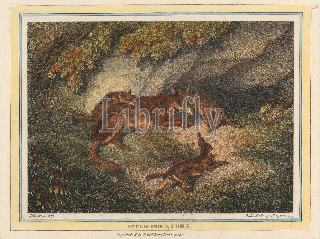 Bitch Fox and Cubs, Print made by Samuel Howitt, 1756–1822, British, Published by Edward Orme, 1775–1848, British, 1812, Etching with hand coloring in watercolor on medium, slightly textured, cream wove paper