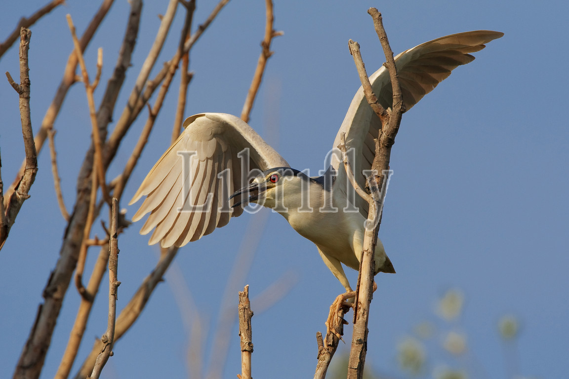 Black-crowned Night Heron, Adult, calling, wings spread, Nycticorax nycticorax, Italy, nature, bird, animal, wildlife, wild, fauna, natural, feather, sky, beak, wing, outdoor, freedom, colourful, Liszt, Natural History, ornithology, vertebrate animals, photography, color image