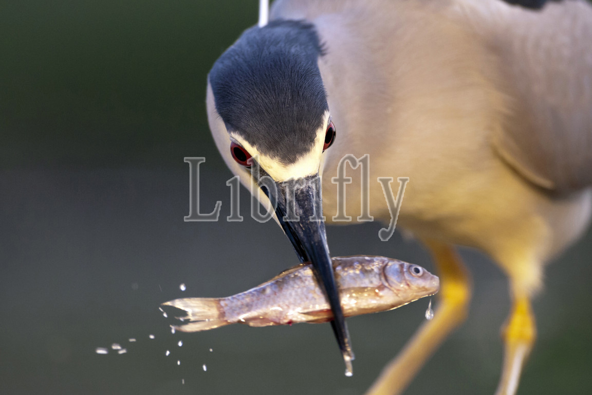 Black-crowned Night Heron with caught fish in beak, Nycticorax nycticorax, Hungary