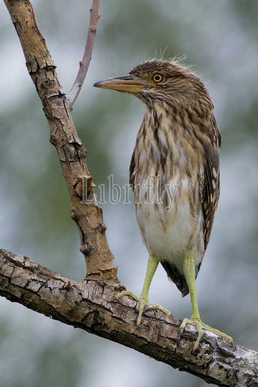 Black-crowned Night Heron juvenile perched on branch, Nycticorax nycticorax, Italy