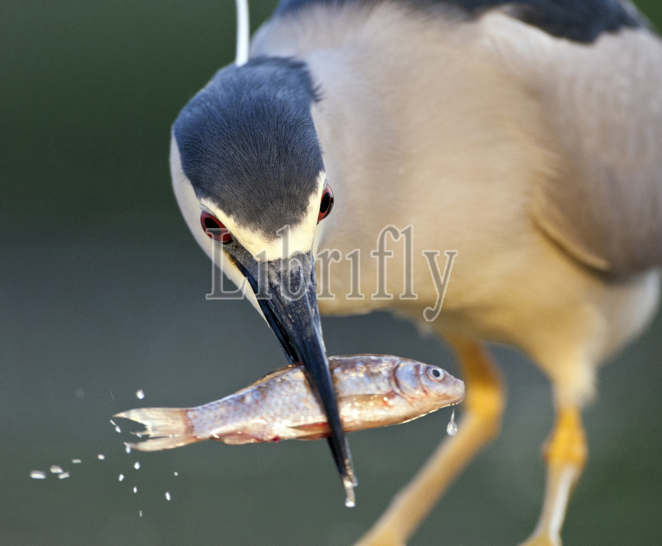 Black-crowned Night Heron portrait with a fish in its bill, Nycticorax nycticorax, Hungary