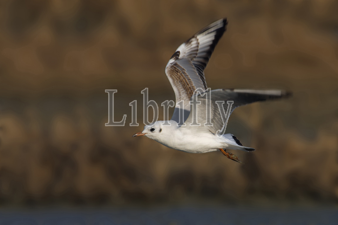 Black-headed Gull juvenile flying, Chroicocephalus ridibundus, Italy