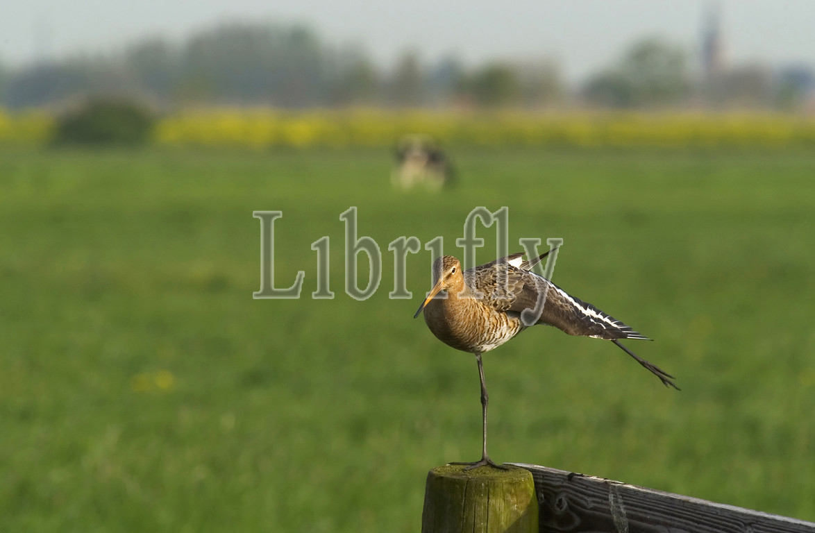 Black-tailed Godwit, standing, fence Netherlands, Limosa limosa, Netherlands, nature, bird, animal, wildlife, wild, fauna, natural, feather, sky, beak, wing, outdoor, freedom, colourful, Liszt, Natural History, ornithology, vertebrate animals, photography, color image