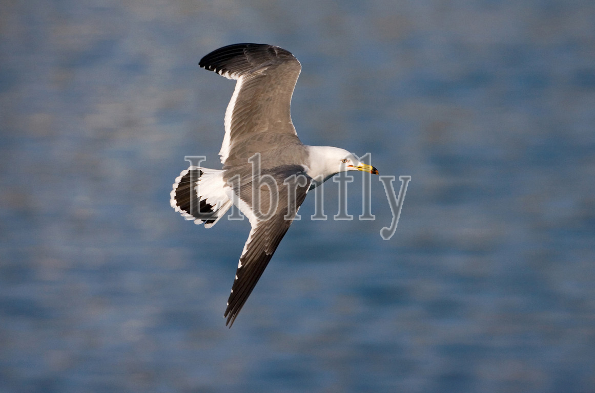 Black-tailed Gull adult flying, Larus crassirostris