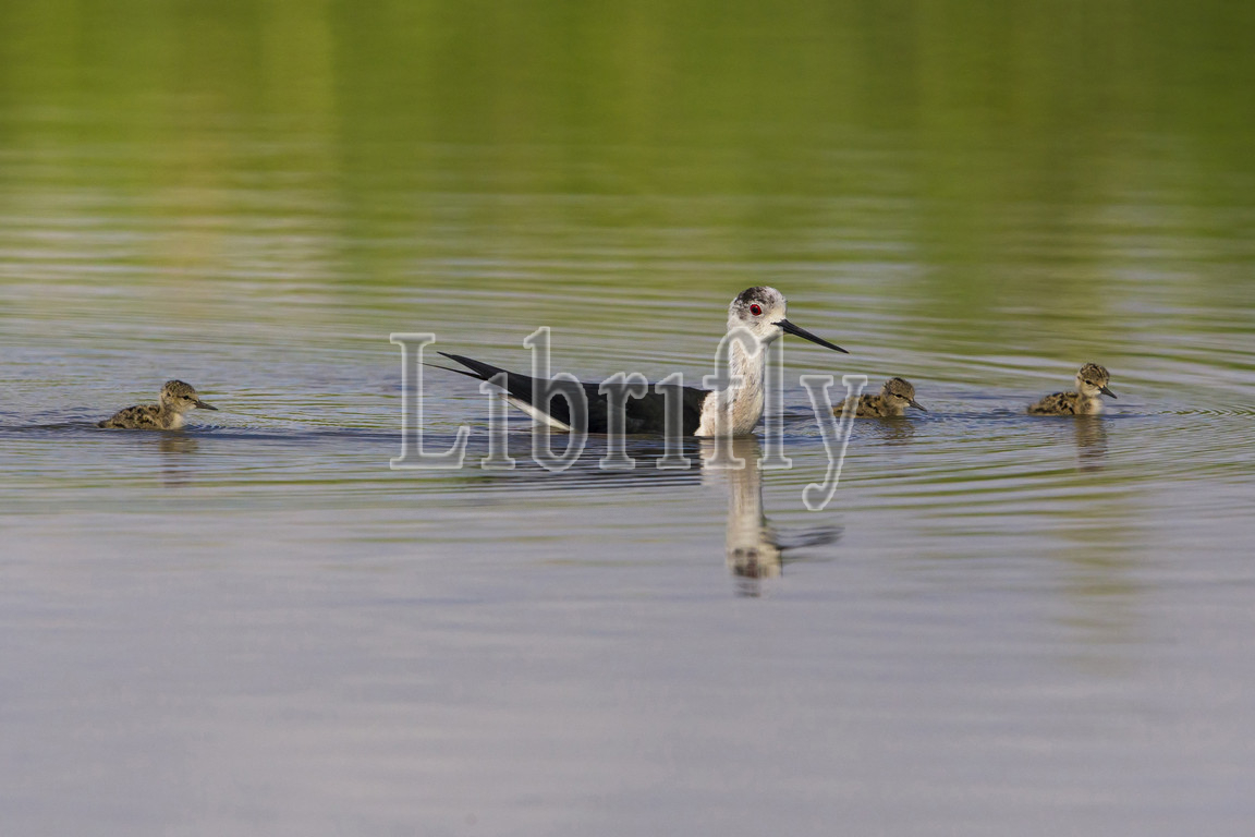 Black-winged Stilt with young, Himantopus himantopus, Italy