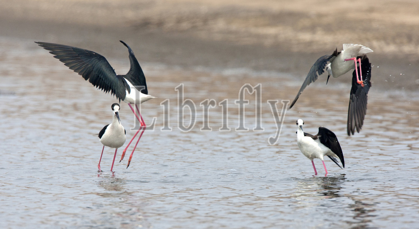 Black-winged Stilts fighting, Himantopus himantopus