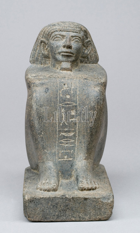 Block statue, Minhotep, Middle Kingdom, Dynasty 12, late–early 13, ca, 1850–1640 B.C, Egypt, Memphite Region, Lisht North, cemetery south, pyramid, House A2, 2, Pit 495, 1913–14, Diorite, H, 17.8 cm, 7, W, 8.7, 3 7/16, D, 14.8, 5 13/16