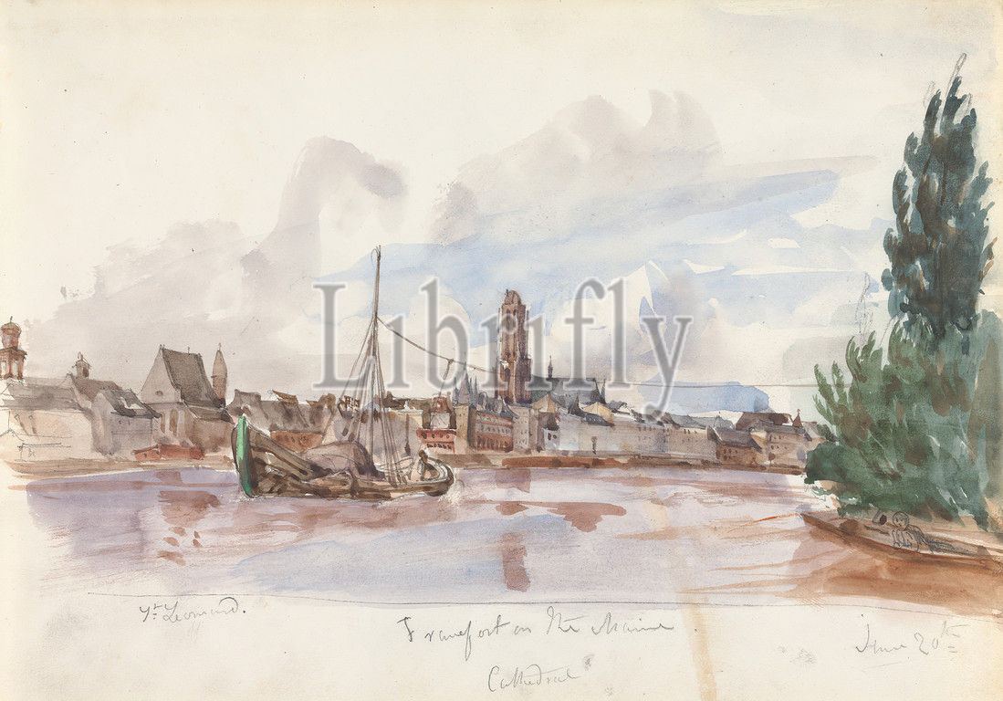 Boat, Cityscape, Cathedral, Background, T, Leonard?, Watercolor, graphite, thin, slightly textured, cream wove paper, Frame, Sheet, boat, cathedral, city, cityscape, marine art, water