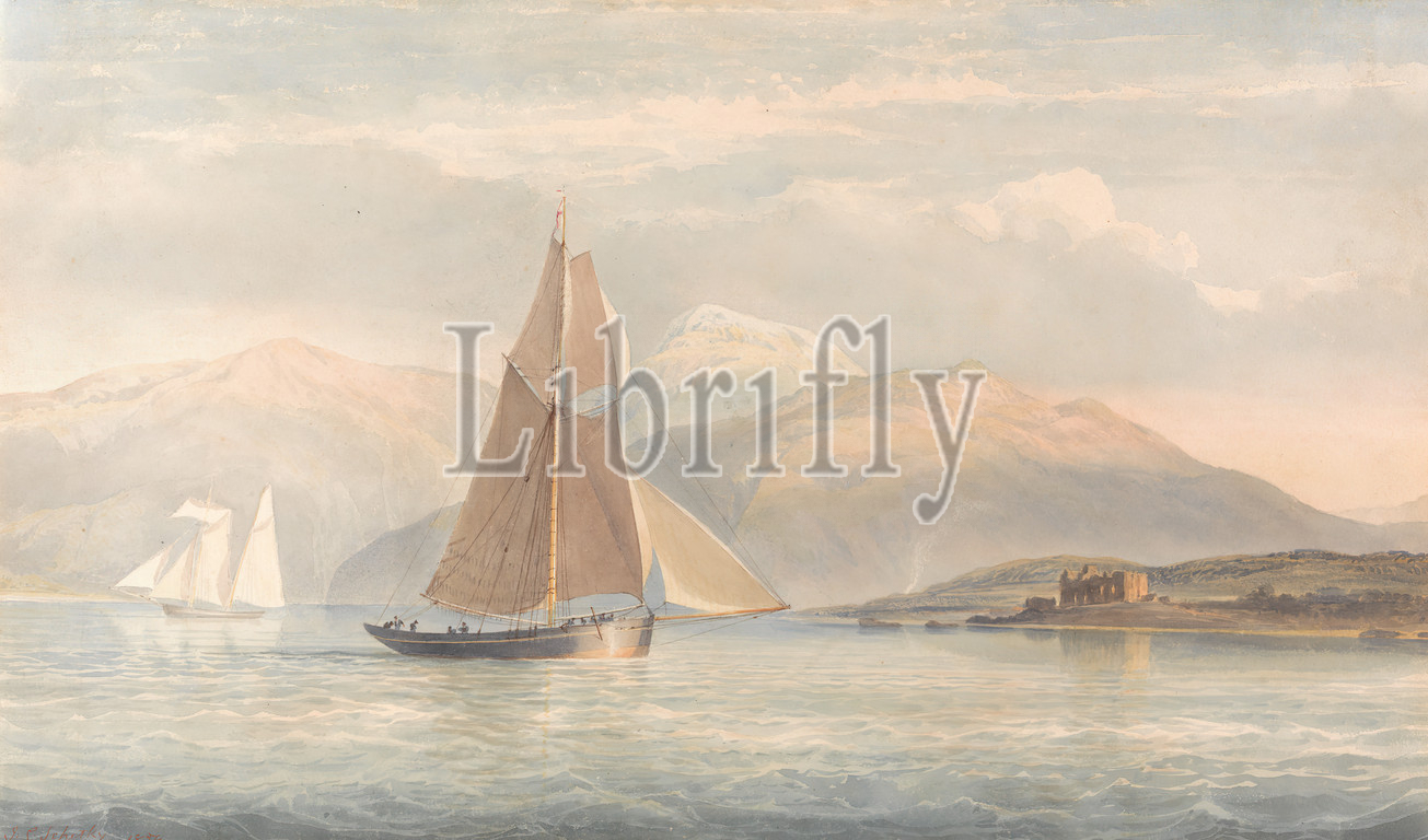 Boat Sailing, Right, Mountains, Background, John Christian Schetky, 1778–1874, British, Watercolor, graphite, medium, slightly textured, cream wove paper, Sheet