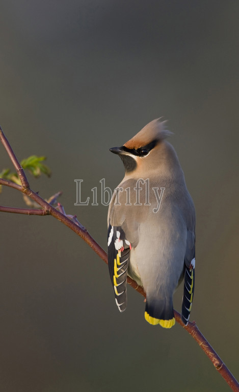 Bohemian Waxwing perched on a branch, Bombycilla garrulus, Netherlands