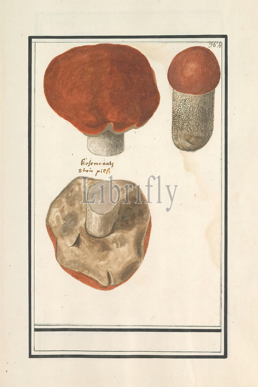 Boletus, squirrel bread, Numbered top right, 364, Part, fourth album, drawings, flowers, mushrooms, Eleventh, twelve albums, animals, birds, plants, 1600, commissioned, Emperor Rudolf II, explanation, Dutch, Latin, French, Anselmus Boetius de Boodt, 1596, 1610, paper, watercolor, paint, deck paint, chalk, ink, pen