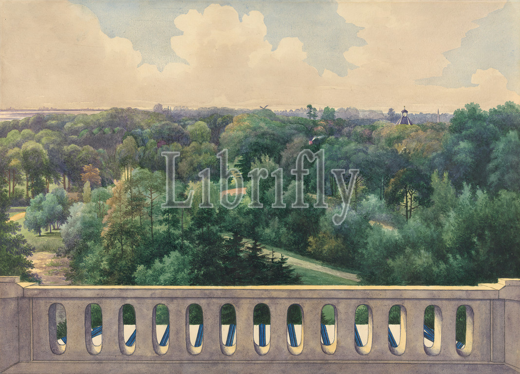 Boschbeek & Gorenendaal, View, Turret towards fin du Haarlemmesmeer, Leiden, Bennenbrock, Hillegom, Gerrit Jan Schouten, Born 1815, Dutch, Watercolor, textured, moderately thick, cream wove paper, Sheet