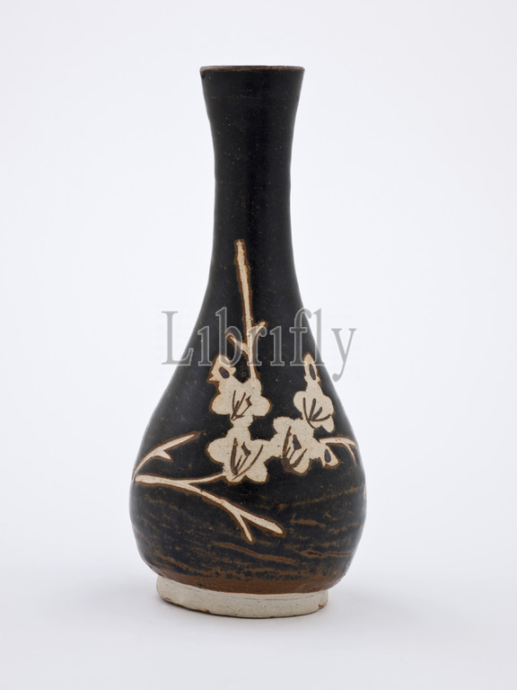 bottle with reserve plum design, Southern Song dynasty, Southern Song dynasty, 1200s, jizhou ware wtih glaze, 7-7/8 in., Asian Art