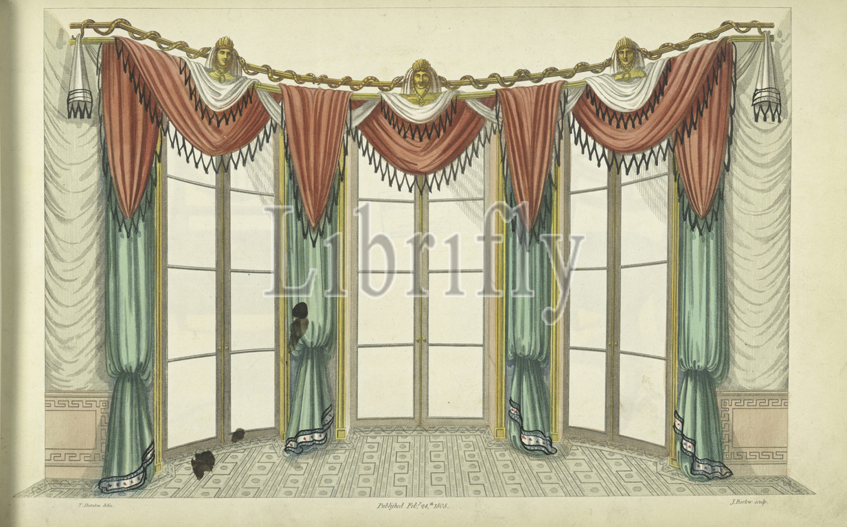 Bow window, elegant drawing room, Prints, 1805, 1806, Sheraton, Thomas, 1751-1806, Sheraton, Thomas, 1751-1806, Barlow, James, 18th cent.