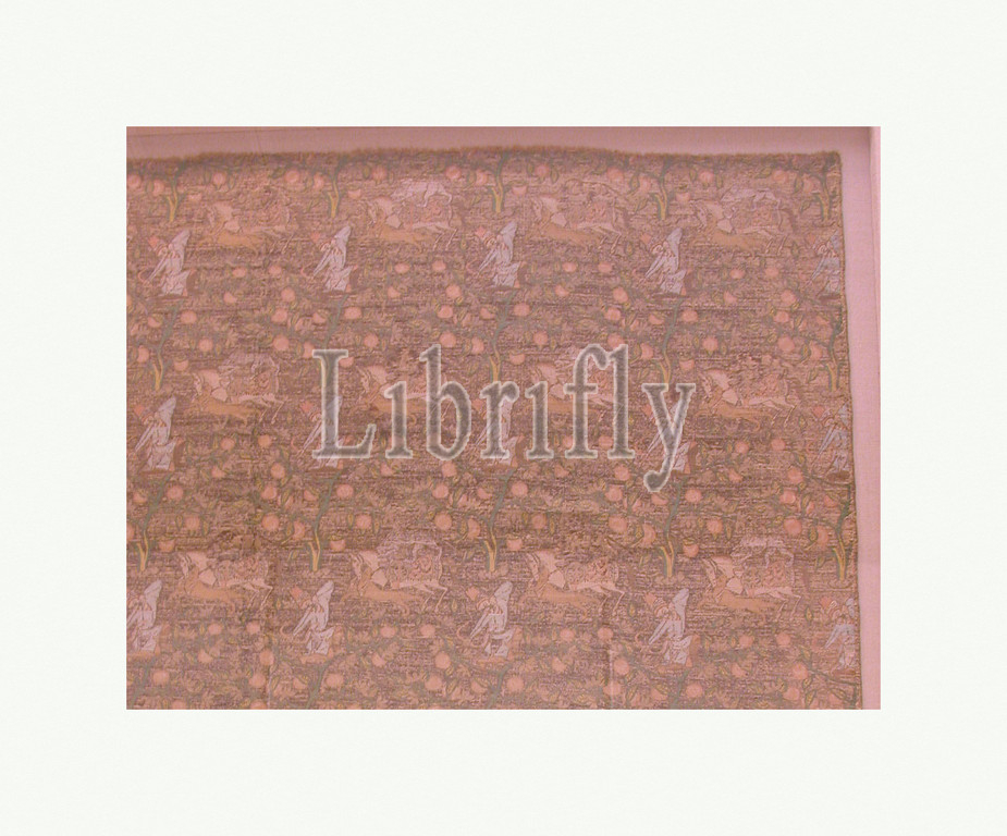 Brocade, Hunting Scene, 18th century, Attributed, Iran, Kashan, Silk, metal wrapped thread, taqueté, Textile, H, 54, 137.2 cm, Textiles-Woven, Hunting, enduringly popular theme, Iranian art, Safavid textiles, early sixteenth, century, eighteenth-century example, hunter wears, blue coat, tall, multipronged cap, scarf wrapped