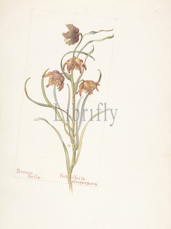 Bronze Bells, Fritillaria atropurpurea, May 2, 1912, Watercolor and brown ink over graphite, with page design indicated in graphite, sheet: 13 11/16 x 9 15/16 in. (34.8 x 25.2 cm), Drawings, Margaret Neilson Armstrong (American, New York 1867–1944 New York)