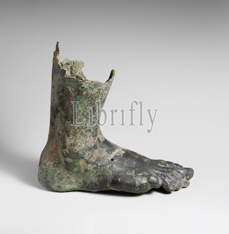 Bronze right foot and lower leg from a colossal statue, Imperial, 1st or 2nd century A.D., Roman, Bronze, H.: 13 in. (33 cm), Bronzes, Right foot and part of leg from colossal statue.