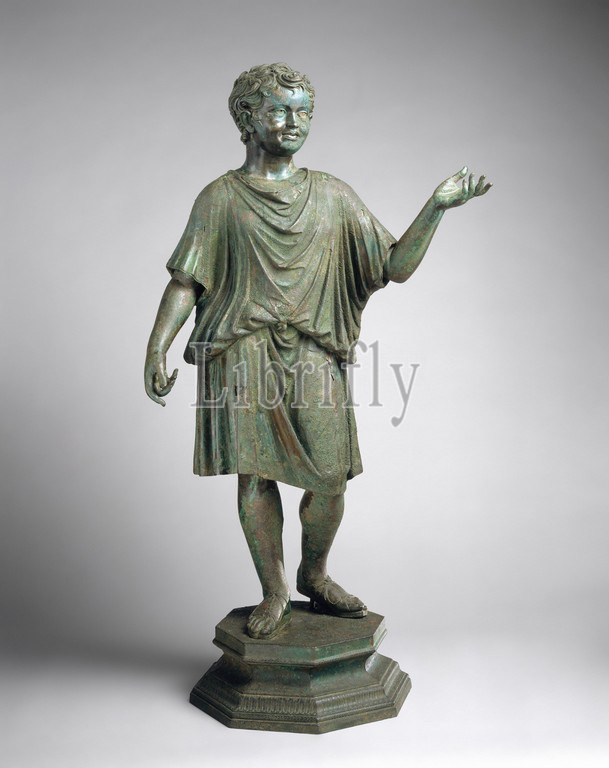 Bronze statue, camillus, acolyte, Early Imperial, Julio-Claudian, ca, .D, 14–54, Roman, Bronze, H, 46 1/8, 117.1 cm, Bronzes, soon, power, emperor Augustus, set, motion, program aimed, restoring, time-honored values, virtue, honor, piety, Religious cults, revived, temples, built, public ceremonies, sacrifices filled, calendar