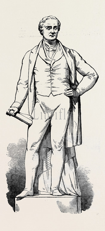 bronze, sculpture, monument, statue, late, sir, robert, peel, erected, west, end, cheapside, 1855 engraving, engraved image, history, illustrative technique, engravement, victorian, arts, culture, retro styled, vintage, retro, arkheia
