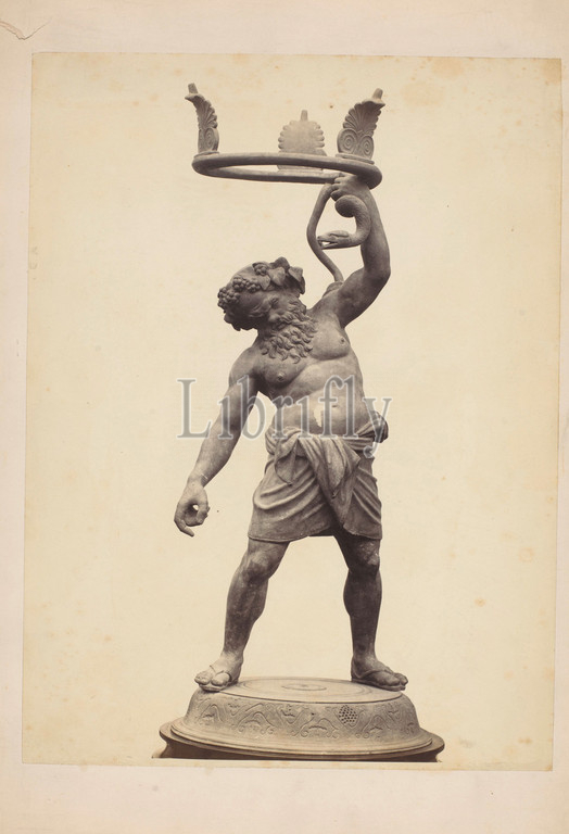 Bronze statue, Silenus, snake, Pompeii, anonymous, Museo Nazionale, c, 1875, c, 1900, cardboard, albumen print, height 370 mm, width 276 mm