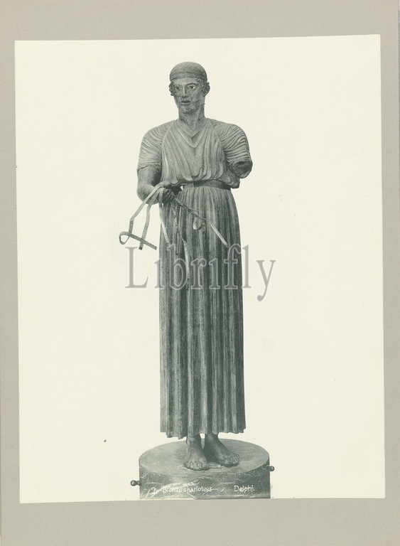 Bronze statue of standing charioteer2 Bronze charioteer Delphi (title on object), anonymous, Delphi, c. 1895 - c. 1915, paper, cardboard, collotype, height 275 mm × width 218 mmheight 239 mm × width 328 mm