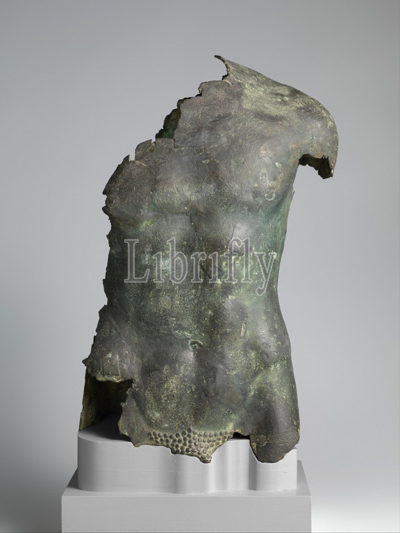 Bronze torso of a youth, Archaic or Classical, 1st half of the 5th century B.C., Greek, Bronze, H. 29 3/4 in. (75.6 cm), Bronzes, Roman overcast of a Greek bronze statue of the early 5th century B.C.. In antiquity most large freestanding statues were made of bronze rather than marble. Hundreds honoring victorious athletes, poets, or generals stood in the great sanctuaries, as well as in civic centers