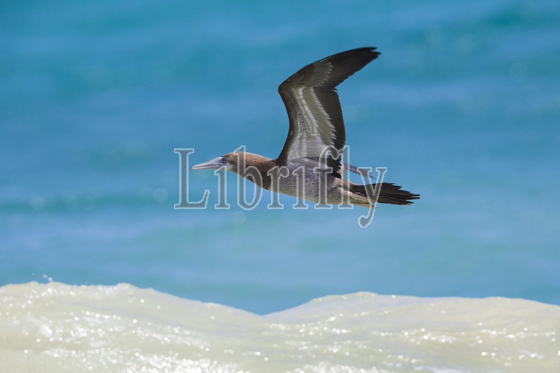 Brown Booby in flight, Sula leucogaster, Capo Verde