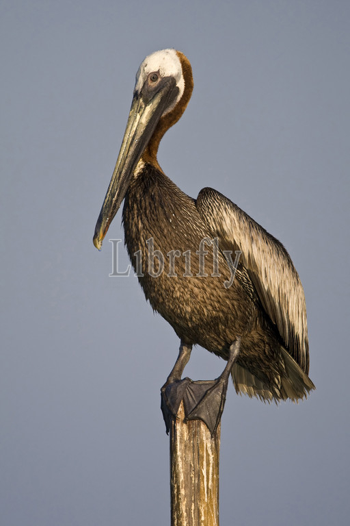 Brown Pelican, adult, pole, Mexico, Pelecanus occidentalis, nature, bird, animal, wildlife, wild, fauna, natural, feather, sky, beak, wing, outdoor, freedom, colourful, Liszt, Natural History, ornithology, vertebrate animals, photography, color image