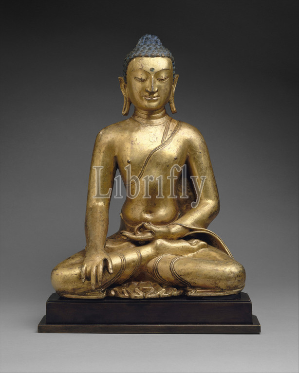 Buddha Shakyamuni, Akshobhya, Buddha, East, 11th–12th century, Tibet, Gilt copper, H, 22 3/4, 58 cm, Sculpture, robust, body, early Tibetan, seems, derive, art, North Indian, post-Gupta, period, seventh, eighth, physiognomy, based, Central Asian, prototypes, date