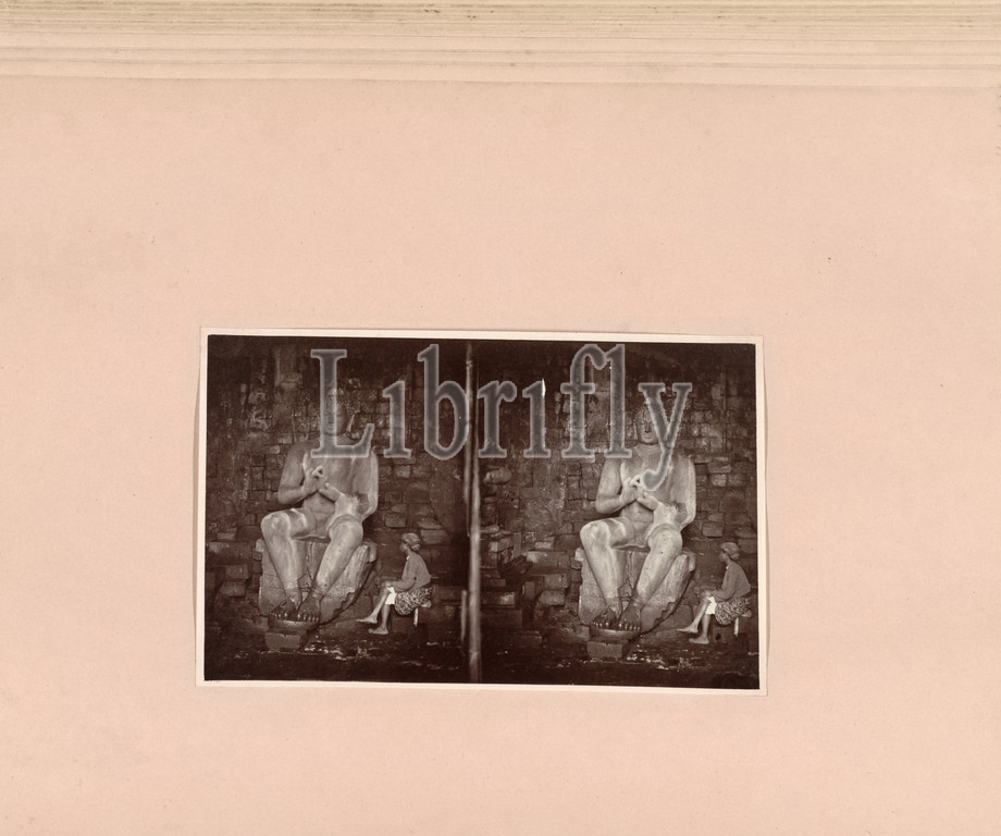 Buddha statue, temple, Mendut, 'Großes Boeda Bild im Tempel von Mendut, der Nä von Boeroboedor, mit Spiegellicht aufgenommen, ', C, Dietrich, fotograaf, c, 1875, c, 1880, paper, albumen print, height 112 mm, width 159 mm