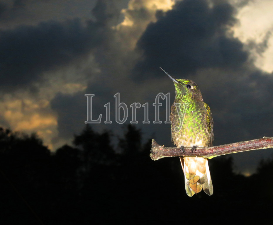 Buff-tailed Coronet, perched, sunset, Boissonneaua flavescens, Colombia, nature, bird, animal, wildlife, wild, fauna, natural, feather, sky, beak, wing, outdoor, freedom, colourful, Liszt, Natural History, ornithology, vertebrate animals, photography, color image